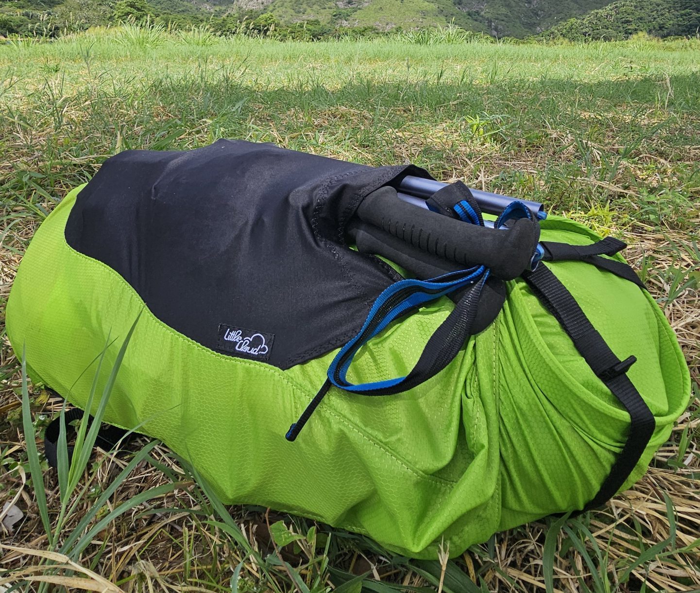 – Système roll top pour ajuster le volume, avec un œillet au bas pour évacuer l’air en le comprimant.
